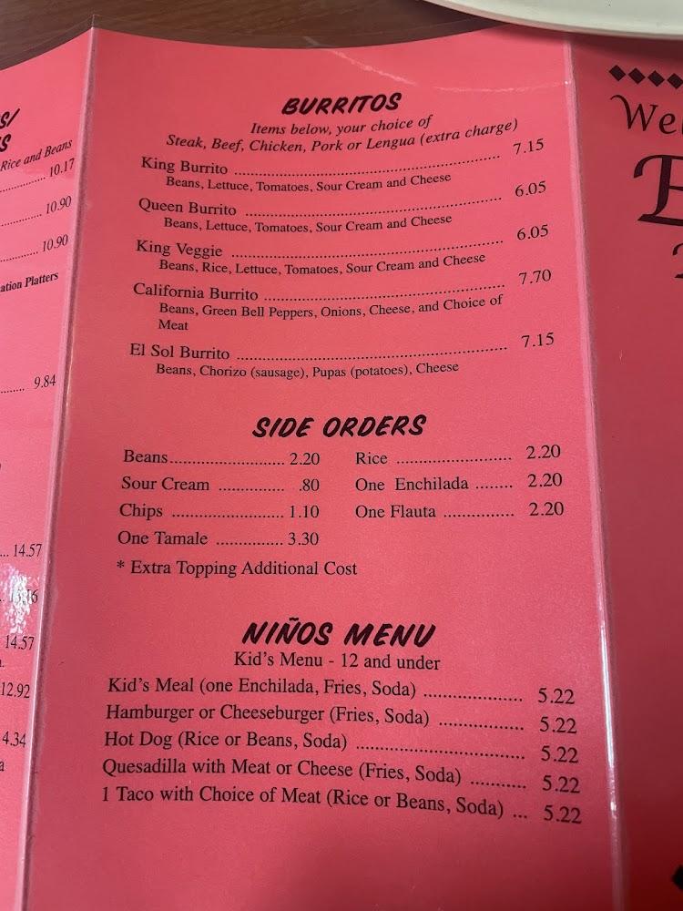 El Sol's menu features a delightful variety of Mexican classics. Start with appetizers like guacamole or nachos. For main courses, indulge in carne asada or chicken fajitas. Diners also enjoy lunch specials, like tacos served with rice and beans for just $9.35.